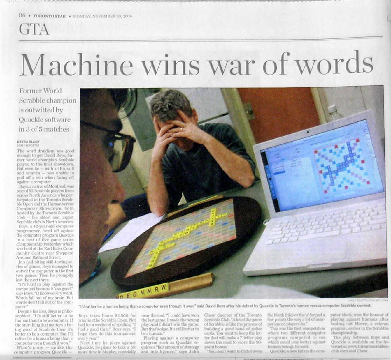 The first Toronto SCRABBLE® Open and Human vs. Computer Showdown